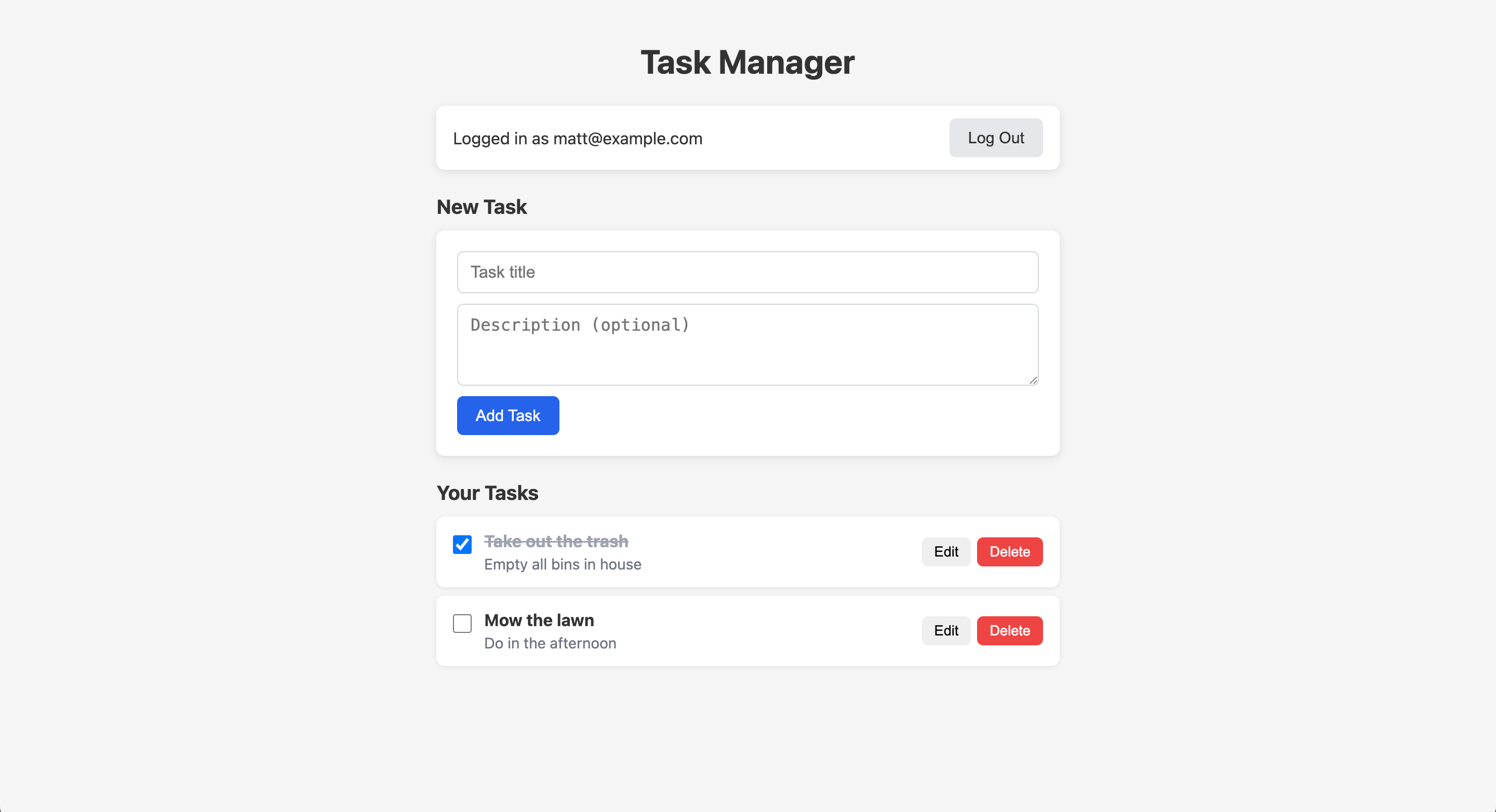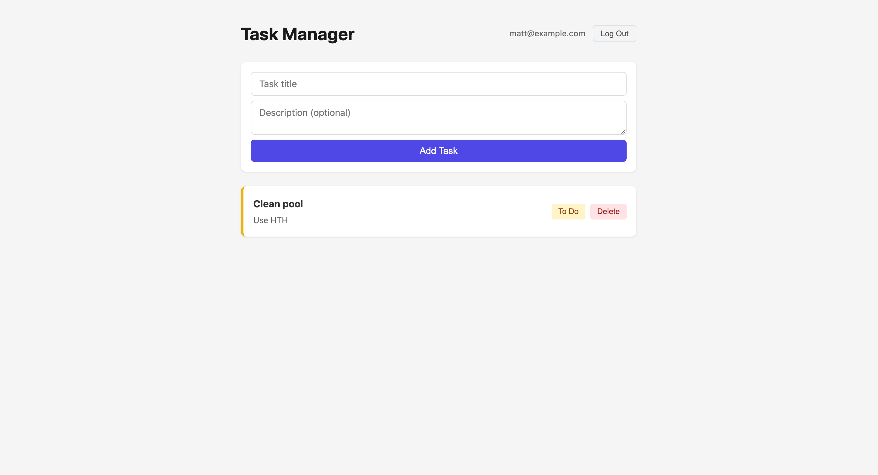 The resulting task manager app was similar to the Supabase version: